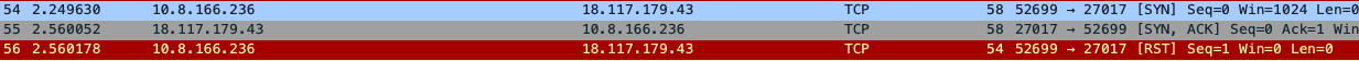 假设你是用-sS -Pn参数指定发起一个TCP SYN扫描且默许远程IP主机存活,nmap会直接发起SYN数据包,如果对方有回应就会回复SYN+ACK数据包(如下图所示)。
