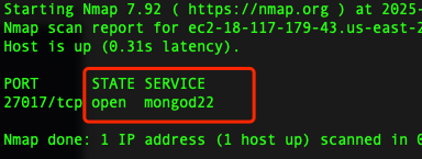 那么大概知道了因为我们-sS扫描(TCP)加上端口又是27017,所以对应的服务识别成mongodb就很正常了(此处我改成了mongod22做测试)。