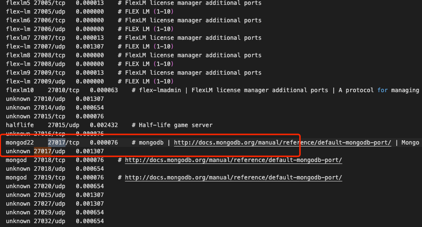 那怎么匹配出27017端口就是mongdb服务的呢?